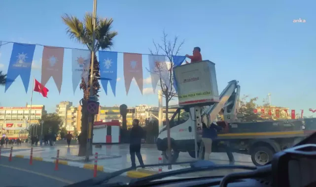 Erdoğan, 4 Şubat günü Aydın’da yapımları tamamlanan projelerin toplu açılışını yapacak. Toplu Açılış Töreni öncesinde, Aydın Atatürk Kent Meydanı’na Erdoğan’ın afişleri ve AKP bayrakları, Aydın bölgesinde elektrik dağıtım ihalesini alan AYDEM şirketine ait araçlar kullanılarak asıldı.