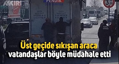 İstanbul Pendik'te üst geçide sıkışan araca vatandaşlar böyle müdahale etti