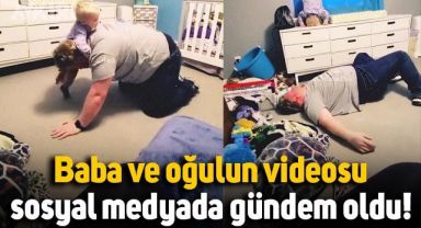 Amerikan güreşlerini taklit eden baba ve oğul sosyal medyanın gündemine oturdu
