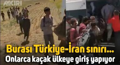 Türkiye-İran sınırından yeni görüntüler: Onlarca kaçak ülkeye giriş yapıyor.