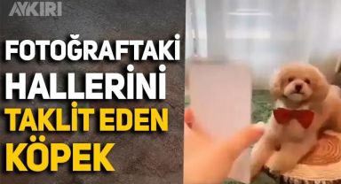 Kendi fotoğraflarını taklit eden köpeğin videosu viral oldu