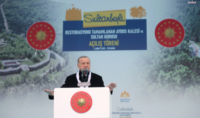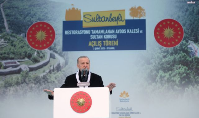 Cumhurbaşkanı ve AKP Genel Başkanı Erdoğan, bugün İstanbul sultanbeyli Meydanı’nda, Sultanbeyli Restorasyonu Tamamlanan Aydos Kalesi ve Sultan Korusu Açılış Töreni’ne katıldı. erdoğan burada şöyle konuştu: