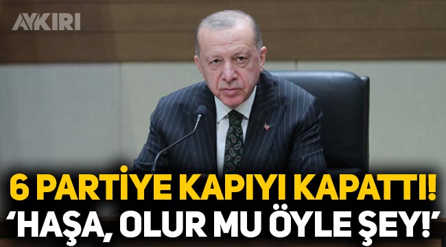 Muhalefetteki altı partinin liderinin geçtiğimiz günlerde bir araya gelerek, 'Güçlendirilmiş Parlamenter Sistem' çağrısı yaptıkları toplantıyla ilgili konuşan Erdoğan, "Bir defa Cumhurbaşkanlığı Hükümet Sistemini bu milletin kendisi getirmiştir. Bunu kabul etmeyenler en başta millet iradesine saygısızlık yapıyor demektir" ifadelerini kullandı. Muhalefetin ortak mutabakatı 28 Şubat'ta açıklayacağını söylemesine değinen Erdoğan, "Tabii bunların bir araya gelmeleri manidar. Niye 28 Şubat? Bu da garip. Öbür taraftan HDP’yi çıldırtıyorlar. Oldu olacak onu da alın yanınıza. Bunlar daha çok bir araya gelirler ama bunlardan bir şey çıkmaz. Biz ise cumhur İttifakı olarak; AK Parti, Milliyetçi Hareket Partisi, Büyük Birlik Partisi olarak emin adımlarla kararlı bir şekilde yolumuza devam ediyoruz, devam edeceğiz. Hazırlıklarımızı buna göre yapıyoruz. Vatandaşlarımızın herhangi bir sıkıntı çekmesine sebebiyet verecek adımlara fırsat vermeyiz. Zaman zaman ekonomi ile alakalı konularda yalan yanlış konuşuyorlar. Ama gerek elektrik konusunda gerek diğer konularda, bunların hiçbirine biz vatandaşımızı ezdirmeyeceğiz ve vatandaşlarımızla geleceğe yönelik adımlarımızı kararlı bir şekilde atmaya devam edeceğiz" dedi. "İleride bu 6 muhalefet partisinden Cumhur İttifakı ile birlikte olmak isteyenlere kapınız açık mı?" şeklindeki soruyu yanıtlayan Erdoğan, "Haşa. Öyle bir şey olur mu? Böyle bir şeye benim kendi tabanım da müsaade etmez." ifadelerini kullandı.
