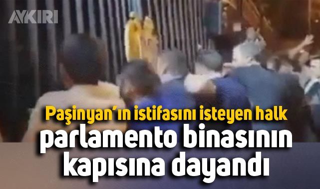 Sosyal medyaya yansıyan görüntülerde Erivan'da Paşinyan'ı istifaya çağıran bir grup göstericinin parlamento binasının kapısına dayandığı görüldü.