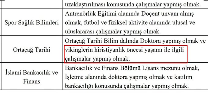 Çorum Hitit Üniversitesi, Resmî Gazete'ye verdiği ilanda, Fen Edebiyat Fakültesi Tarih Bölümü Ortaçağ Tarihi Anabilim Dalı Doktor Öğretim Üyesi kadrosuna başvuracak adaylar için; "Ortaçağ tarihi bilim dalında doktora yapmış olmak ve Vikinglerin Hristiyanlık öncesi yaşamı ile ilgili çalışmalar yapmış olmak" şartı koydu.