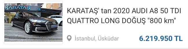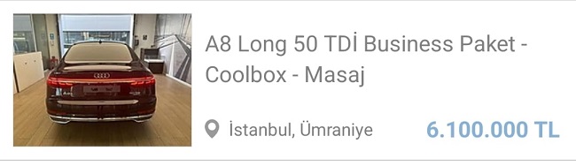 Şükrü Başdeğirmen'in kullandığı Audi A8 makam aracının güncel bedelinin ise yaklaşık 5 milyon lira olduğu öğrenildi.