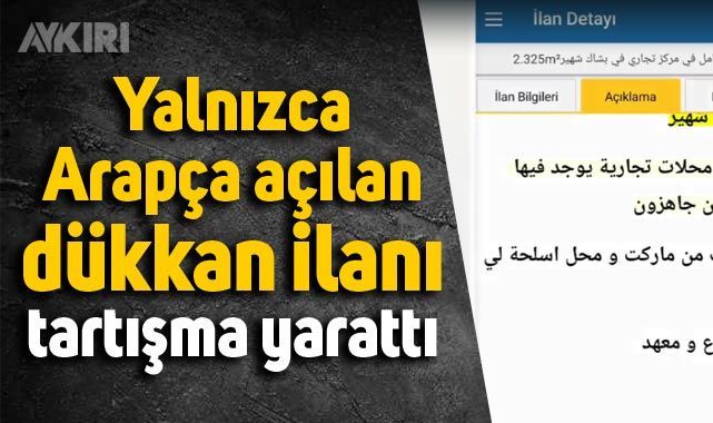 Fiyat ve iletişim bilgilerinin dışındaki tüm bilgilerin arapça olduğu ilan, sosyal medyada tepki aldı.