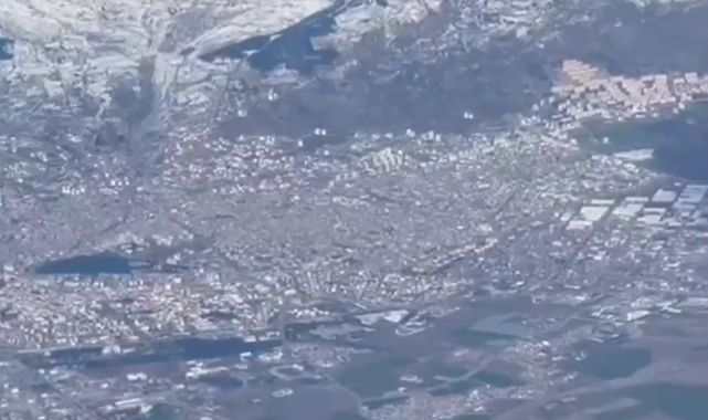 Kahramanmaraş’ın üzerinden uçan bir yolcu uçağından çekilen görüntüler ise afetin görüntülerini gözler önüne serdi.