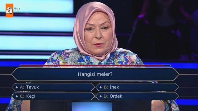 "Hangisi meler" sorusunun şıklarında İnek, Tavuk, Keçi ve Ördek yer alıyordu. Ancak yarışmacının joker hakkını kullanması şaşkınlık yarattı.
