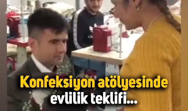 Atölyede çalışan kız arkadaşına evlilik teklif eden gencin videosu kısa sürede yüz binlerce kez izlendi.