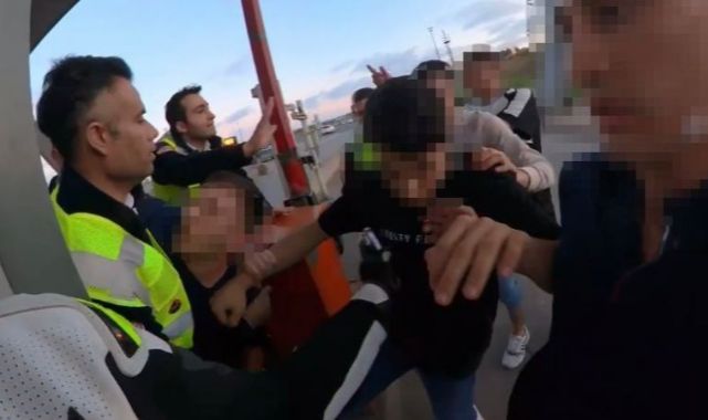 Tartışma kısa sürede kavgaya dönüştü ve otomobilde bulunan bir genç, aracın üzerine çıkarak kabindeki gişe memuruna yumruk attı. Korku dolu kavgada tekmeler ve yumruklar havada uçuştu. Kavgayı fark eden diğer sürücüler araya girerek olayı durdurmaya çalıştı.