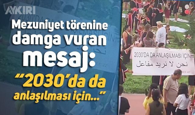 Aykiri.com.tr Genel Yayın Yönetmeni Batuhan Çolak'ın paylaştığı görüntülerde, öğrencilerin Türkçe "2030'da da anlaşılması için" dedikten sonra Arapça mesaj verdikleri görüldü.