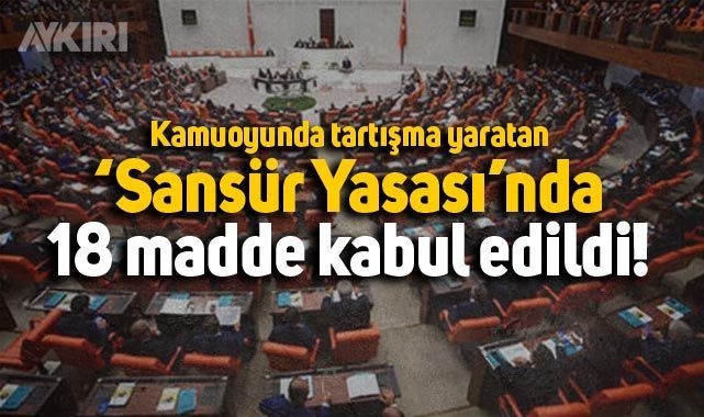 'Sansür Yasası' olarak bilinen Basın, sosyal medya ve internet haberciliğine ilişkin teklifin birinci bölümü üzerindeki görüşmeler tamamlandı. Yasayla ilgili toplamda 18 madde kabul edildi.