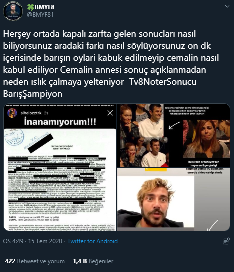 Noter sonucu olduğu iddia edilen belgeye göre Barış'ın önde olmasına rağmen şampiyon olmaması, yarışmacının hayranları tarafından sosyal medyada tepkiyle karşılandı. Twitter'da kullanıcılar, "Tv8NoterSonucu ŞampiyonBarış" başlığı ile tepki göstererek Acun Ilıcalı'dan açıklama yapılmasını istiyor.