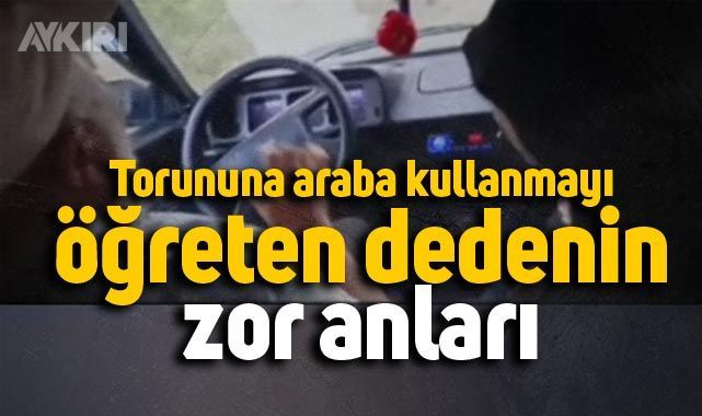 Torununa araba kullanmayı öğreten dedenin görüntüleri gündem oldu