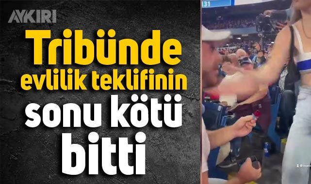 Tribünde binlerce kişinin önünde yapılan evlilik teklifinin sonu kötü bitti...