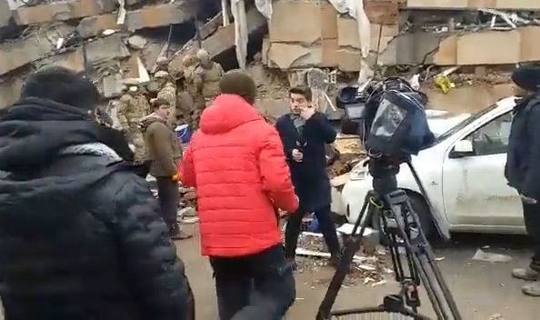 Son olarak TRT, deprem bölgesine giderek canlı yayın yapmaya başladı. O esnada da, TRT muhabirini görüntüleyen vatandaş, şu sözlerle tepki gösterdi: "Biz dünden beri buradayız. Herhangi bir çalışma ekibi falan yok. Bugün kameralar...TRT Haber'in ekipleri geldi. Çalışmalar kameraların gelmesiyle başladı. Çekim yapmak için AFAD ekiplerini bekliyorlar. Çalışma falan yok...hiçbir yerde yok. Yaralılar çok, enkaz altında 2 günden beri sesleri geliyor."